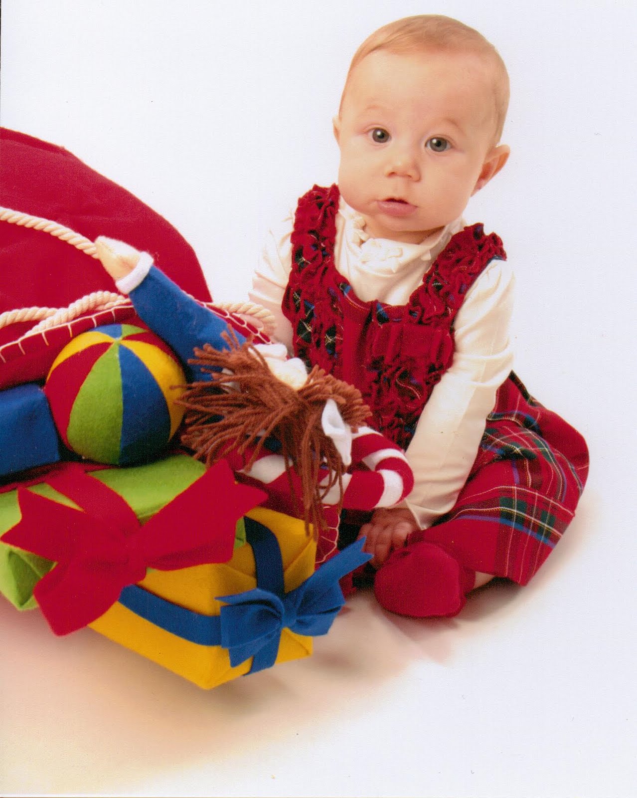 Nana and Grandpa brought down Juliette's Xmas presents so we wouldn't have to bring them back to VA with us after break, so she got some practice opening presents. She did a pretty good job grabbing the paper and pulling- with her two little fingers. She didn't know quite what to do after that, but it was cute. True to form, she liked the crinkly bag her presents came in more than anything. Her little hat was so adorable- it says My first Christmas. Just like her mommy, she passed up the toys and went straight for the books!