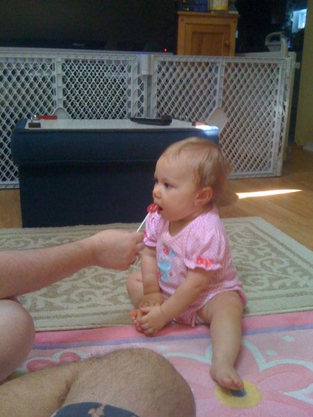 Yeah they call them suckers down here. I found them in the organic candy section at Wegman's. I'm turning into something I didn't want to be!!! So yes I shop in the organic section for certain things like milk- too many hormones in regular cow milk in my opinion. I got the lollipops because I wanted her to have a special treat, but not all that crap sugar. These are made from real fruit juices and natural sugar. I only let her lick it a few times before putting it away. They come in some cool flavors too like pomegranate!